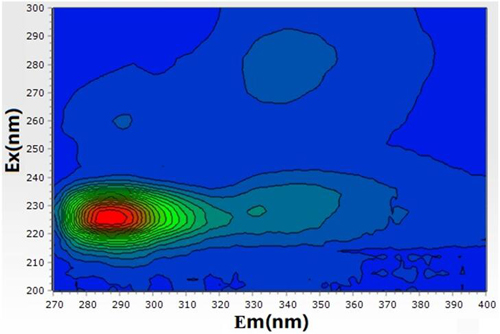 三維熒光光譜(EEM)是將熒光強度以等高線方式投影在以激發(fā)光波長和發(fā)射光波長為縱橫坐標(biāo)的平面上獲得的譜圖,圖像直觀,所含信息豐富。