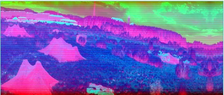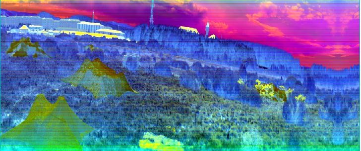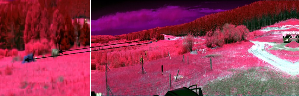 綠色植被、樹木等綠色的目標(biāo)與偽裝目標(biāo)在整個大環(huán)境下都顯示為綠色,而利用短波紅外相機(jī)進(jìn)行拍攝則可以區(qū)分開真實(shí)的綠色植被(或者樹木、草)是與偽裝目標(biāo)不一樣的。