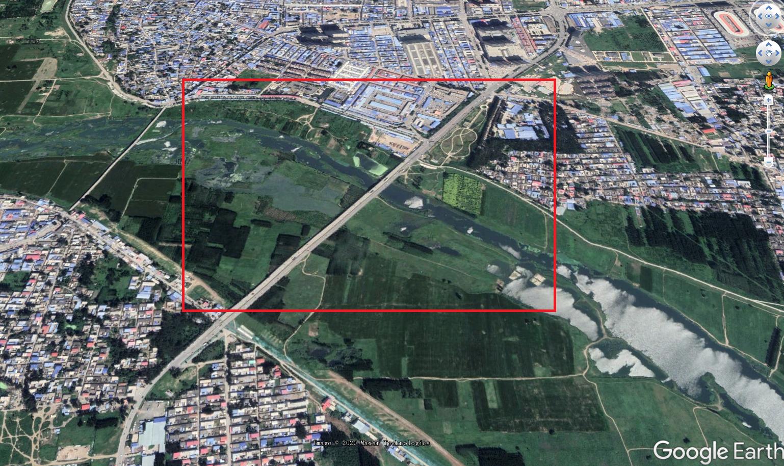 Figure 2 The river area in the red box is the area captured by airborne hyperspectral imagery