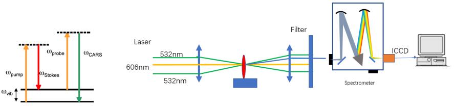 Fig.3:Schematic diagram and experimental device diagram of CARS