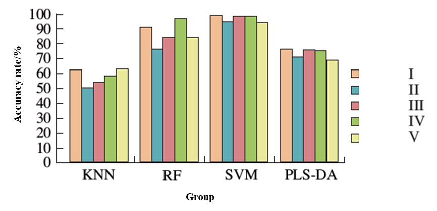 Fig. 6 Classification accuracy of different algorithms for samples at five maturity stages