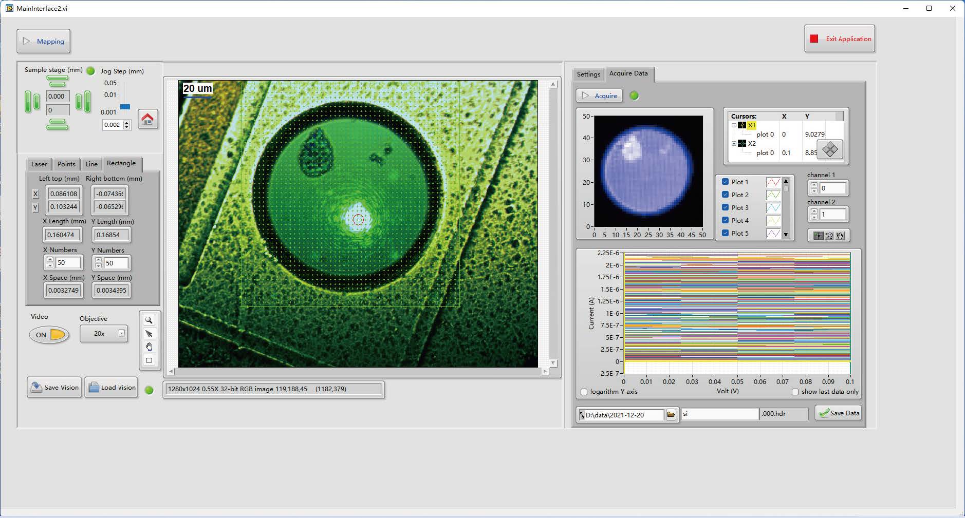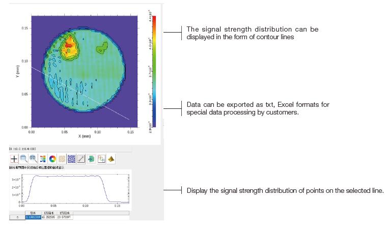 The system contains excitation lasers, scanning galvanometer, microscopy, data acquisition unit, and control software. When scanning the sample, the galvanometer make the laser spot scans and moves in the XY direction of the sample fast. The software records the position of each scanning point and current output value, and synchronously depicts a graph showing the current distribution of the sample. The light path also ensure the light spot pattern on different positions of the sample will not change.