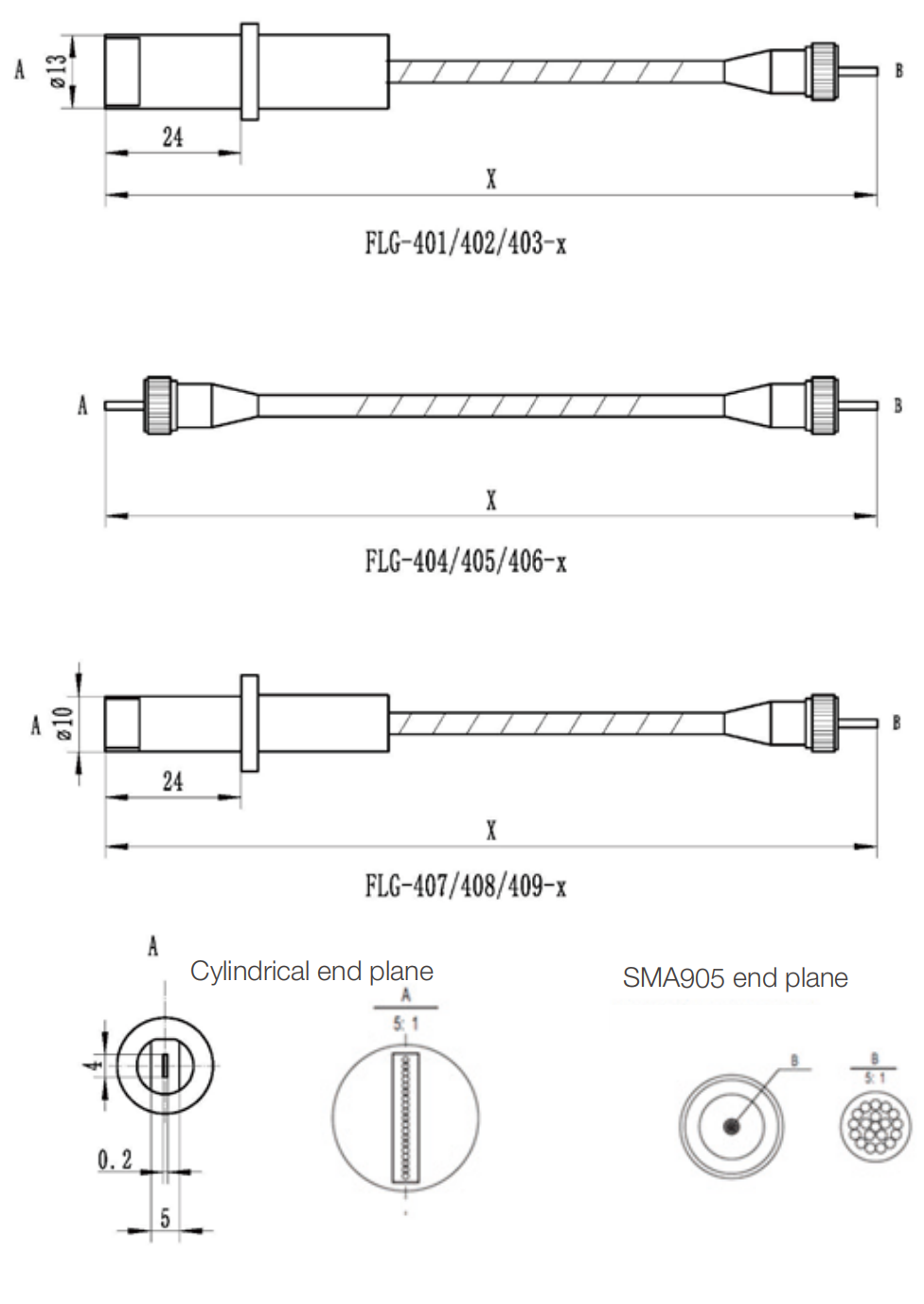 X = length, the standard is SMA905 interface, FC or other interfaces are optional.