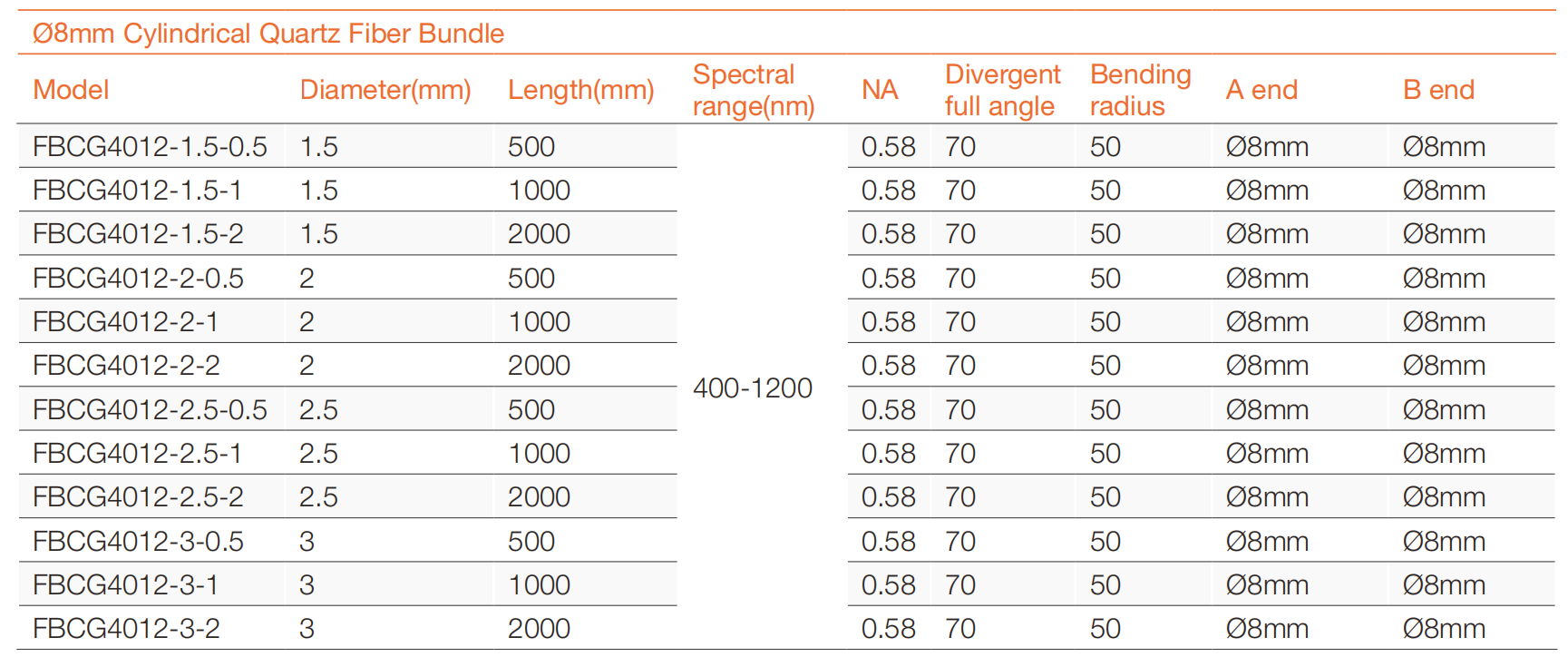 FBC series fiber bundle features big fiber diameter, specially suitable for coupling with lamp.