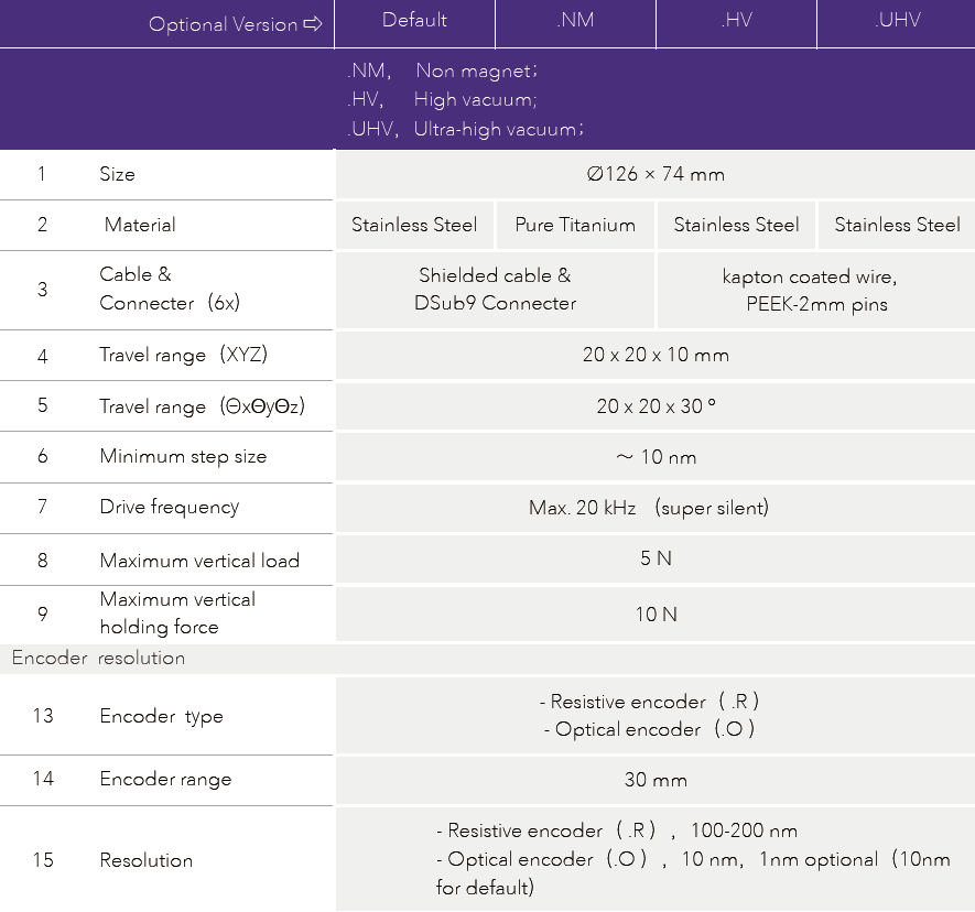 • Non magnet(.NM)、High Vacuum(.HV)& Ultra-high Vacuum(.UHV)optional