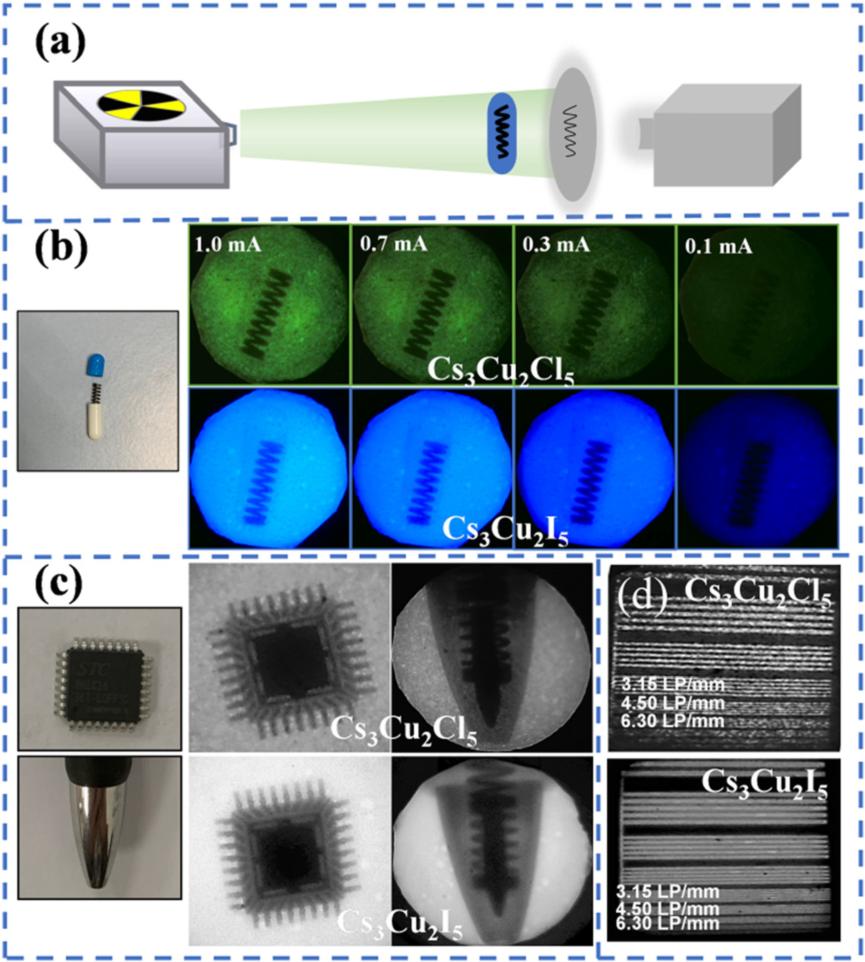 基于這些高性能單晶,研究團隊成功制備了均勻的閃爍屏,空間分辨率高達(dá)6.5線對/毫米。研究結(jié)果顯示,Cs3Cu2Cl5和Cs3Cu2I5單晶有望成為新型低成本、高性能的綠色和藍(lán)色閃爍體,適用于實際X射線成像。該研究為快速合成適用于實際應(yīng)用的Cs3Cu2X5單晶提供了重要指導(dǎo)。