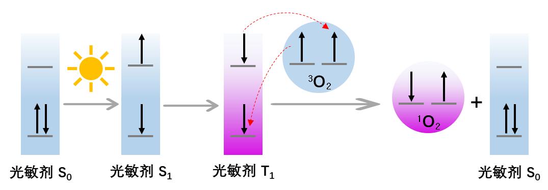 圖2. 光敏劑作用下單線態(tài)氧產(chǎn)生過程示意圖