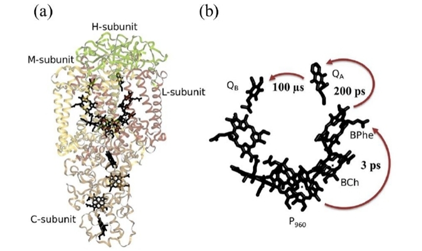 圖4. 紫色細(xì)菌光合反應(yīng)中心的電子轉(zhuǎn)移過程示意圖