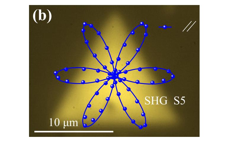二次諧波(SHG)測(cè)量是在與TRS測(cè)量相同的裝置中獲得的,其中使用785納米激光作為基本激發(fā)光,并使用CCD光譜儀記錄二次諧波的光譜。通過步進(jìn)電機(jī)控制的偏振器和半波片來控制激發(fā)激光和生成輸出的偏振。如圖1所示為實(shí)驗(yàn)數(shù)據(jù)。