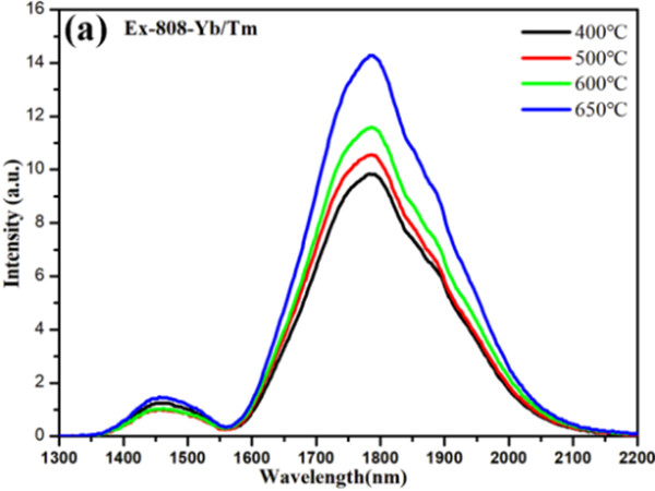 (a) x =0.6的樣品在不同溫度熱處理3h后在808nm激光激發(fā)下的近中紅外發(fā)光,