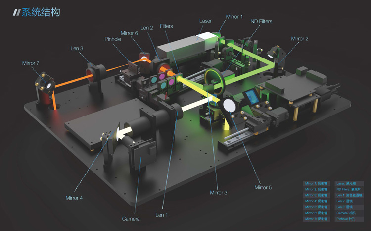 1.溫度濕度對穩(wěn)定性的影響在光學(xué)系統(tǒng)中,光路越長,反射鏡越多,那么光學(xué)調(diào)整架由于溫度濕度影響而產(chǎn)生的漂移量就越大,激光光斑的漂移就會(huì)越嚴(yán)重。從共聚焦原理可以看到,共聚焦就是要把激光光斑成像到針孔上,激光光斑漂移就意味著針孔上的光斑像漂移,因此通光量就會(huì)顯著下降。為了避免信號(hào)強(qiáng)度受到影響,因此只能把針孔變大,進(jìn)而影響共聚焦性能。為了解決這個(gè)問題,F(xiàn)inder930 采用了激光器內(nèi)置的設(shè)計(jì),*大程度減小光路長度,同時(shí)采用受溫度濕度影響形變*小的航空鋁材設(shè)計(jì)制作光學(xué)元件調(diào)整架。