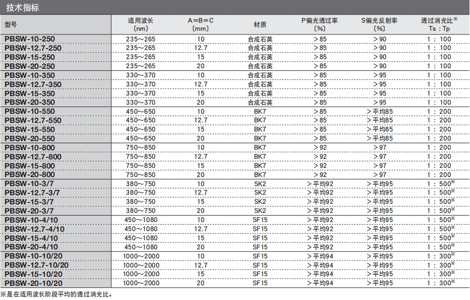 ?與偏光板或?qū)拵У?/2波長(zhǎng)板組合使用,可以做成不隨波長(zhǎng)變化的可變光量分束裝置。