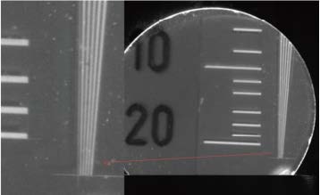 TYP 39分辨率卡的X射線圖像。測(cè)試1mm厚的YAG(Ce)時(shí),分辨率可以達(dá)到20pl/mm以上。