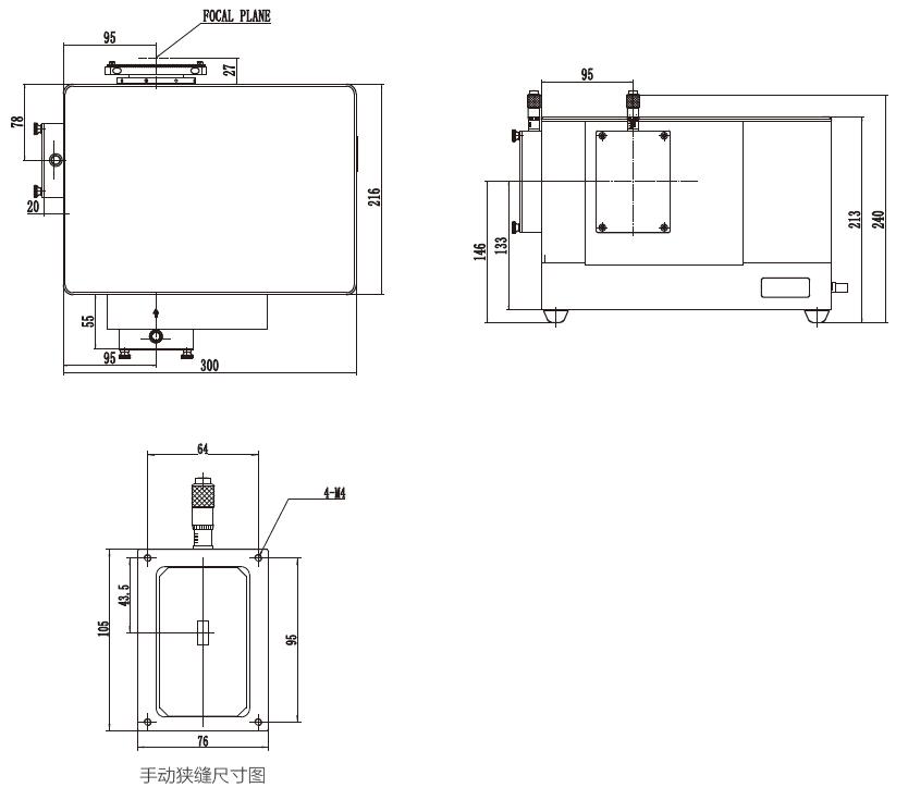 200mm焦距影像校正光譜儀 側(cè)入口、狹縫直出口、可同時(shí)安裝兩塊光柵 |