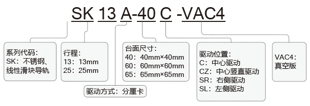 SK系列精密不銹鋼手動直線滑臺(真空)說明: