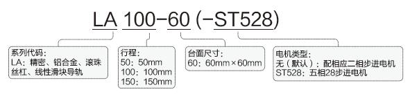 LA系列精密電動(dòng)直線(xiàn)滑臺(tái)命名規(guī)則: