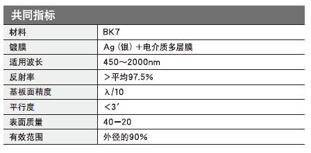 日本SIGMA KOKI鍍銀膜反射鏡技術(shù)指標(biāo)