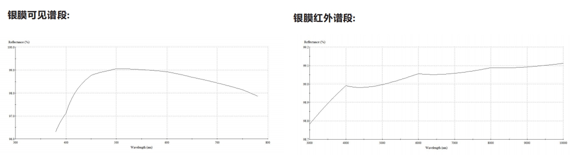 · 與鋁膜反射鏡相比,在可見光到紅外波段可得到更高的反射率。