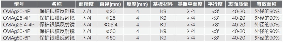 1. OMAg系列保護(hù)銀膜反射鏡