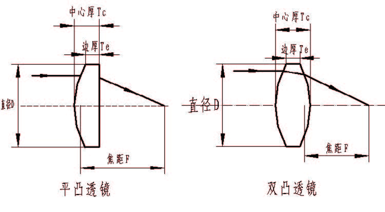 根據(jù)形狀分為:平凸和雙凸,根據(jù)材料分為K9 玻璃( 或BK7) 與石英;