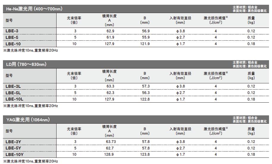 · 光束擴束器的光學(xué)系統(tǒng)為沒有膠合透鏡的空氣隙型透鏡構(gòu)造,因此,高能量激光也可以使用。