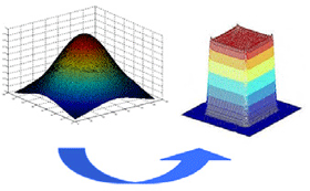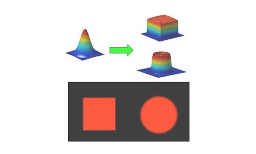 衍射平頂光束整形元件用于將一個(gè)高斯入射光變?yōu)閺?qiáng)度均勻的平頂光束,具有很銳利的邊緣,可以是圓形或方形。主要的應(yīng)用包括激光燒蝕、激光焊接、激光打孔、激光顯示器、激光醫(yī)學(xué)及激光醫(yī)療等。