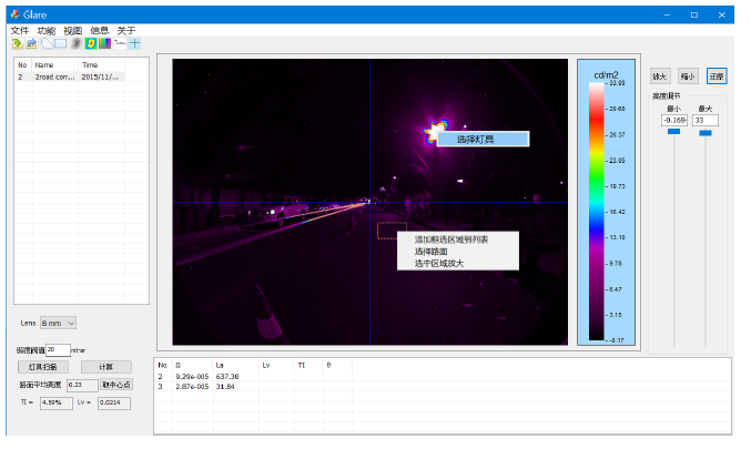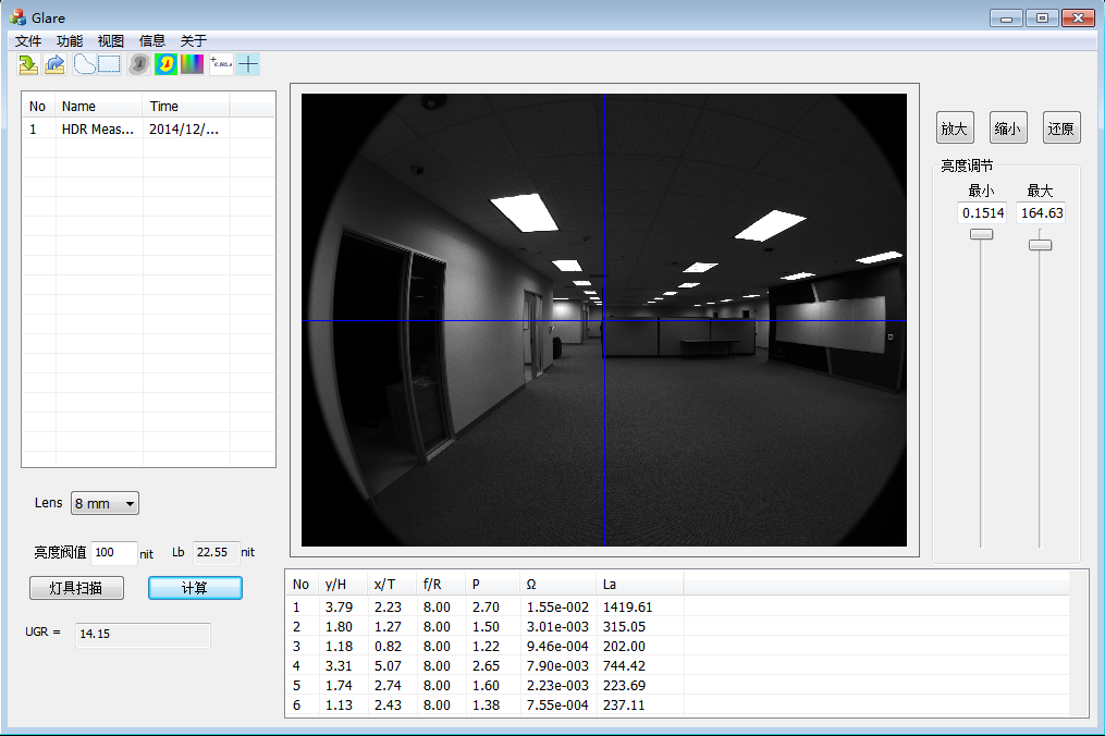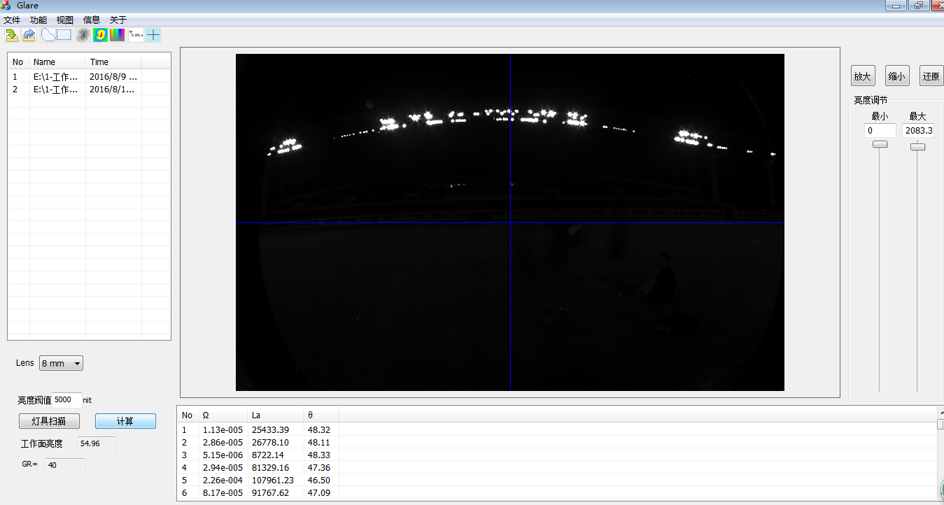 Glare眩光測(cè)量軟件現(xiàn)場(chǎng)測(cè)試數(shù)據(jù)