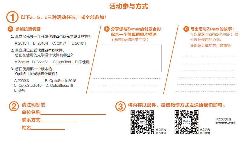 卓立漢光為您提供:“Zemax軟件、(免費(fèi))培訓(xùn)+硬件”的全套解決方案;現(xiàn)尋找富有激情的您,共享您與Zemax的故事,Zolix與您分享我們與Zemax的故事!