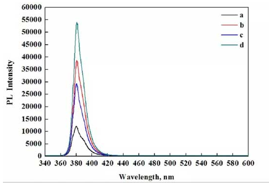 作為第三代半導(dǎo)體材料的典型代表,GaN藍(lán)光材料一直是近年來研究的熱點(diǎn)。ZnO和GaN同為穩(wěn)定的六角纖鋅礦結(jié)構(gòu),室溫下的禁帶寬度為3.37eV,激子束縛能高達(dá)60meV,即使在室溫甚至高于室溫下也能實(shí)現(xiàn)高效的激子發(fā)射。因而,ZnO成為制備紫外發(fā)光器件(LEDs)、紫外激光器(LDs)等短波長光發(fā)射器件的主要候選材料。圖2和圖3為不同條件下制備的ZnO微米管的PL光譜,測試儀器采用北京卓立漢光自主研發(fā)生產(chǎn)的Flex One“微光”系列顯微光致發(fā)光光譜儀,激發(fā)光源選用325nm HeCd激光器。