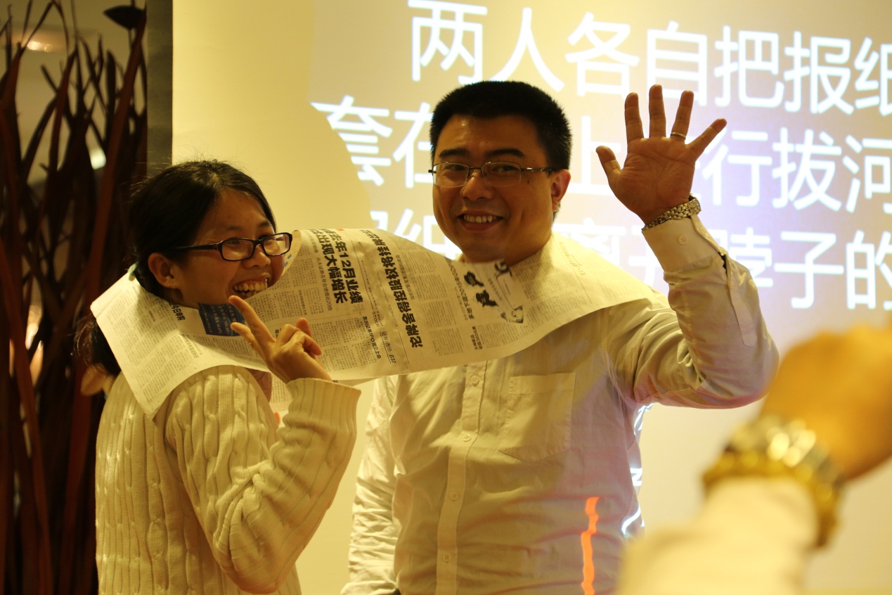 年終總結(jié)大會后,公司集體員工齊聚一堂,歡聲笑語,其樂融融,用餐過程穿插了許多有趣的游戲,其中包括:擠眉弄眼、手舞足蹈、報(bào)紙拔河、巧合啤酒、一反常態(tài)等等。大家參與興致濃厚,把用餐氣氛一次次帶入高峰。