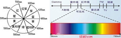 人眼對(duì)顏色的感知決定于三個(gè)因素:光源、物體反射率和人眼的視覺(jué)函數(shù)。在光源一定情況下,不同人對(duì)同一物體的顏色感知不同與每個(gè)人對(duì)不同波長(zhǎng)光的感知能力不同決定。如對(duì)可見(jiàn)光的定義,有的定義為400nm(藍(lán))~700nm(紅),則有的定義則為380nm~780nm。這些定義并沒(méi)有嚴(yán)格的準(zhǔn)確性,原因就是每個(gè)人對(duì)不同波長(zhǎng)光的感應(yīng)靈敏度不一樣。