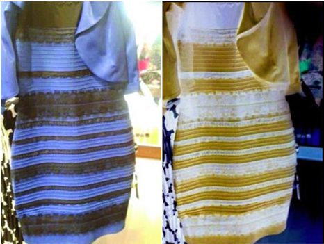 2月25日,一名叫做@swiked 的美國(guó)女孩上傳了一張照片,是一條橫條紋的連衣裙。就是這條連衣裙近日來(lái)被炒得沸沸揚(yáng)揚(yáng);@swiked 覺(jué)得裙子顏色是白色、金色相間的,而她的朋友們則很堅(jiān)持地認(rèn)為是藍(lán)色和黑色。雙方爭(zhēng)執(zhí)不下,又都說(shuō)服不了對(duì)方,她只好將照片發(fā)到網(wǎng)上來(lái)征求大家意見(jiàn)。