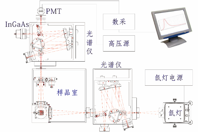 | OmniFluo “卓譜”系列穩(wěn)態(tài)熒光光譜系統(tǒng)主要系統(tǒng)構(gòu)成 1.激發(fā)光源部分:紫外-近紅外波段各種波長可調(diào)單色光源或單波長激光器 2.光譜采集部分:影像校正光譜和高靈敏型科學(xué)級CCD或單點(diǎn)探測器和數(shù)據(jù)采集器 3.樣品室部分:固體粉末樣品臺、超低溫樣品臺等可選 ![]() |