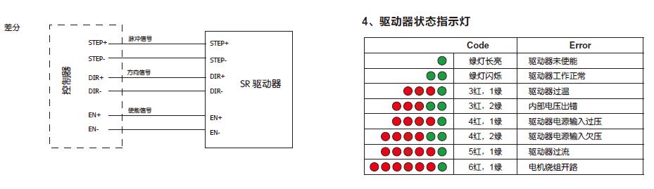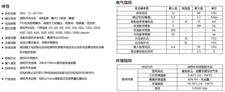 SR2 驅(qū)動(dòng)器有2 個(gè)高速輸入口STEP 和DIR,光電隔離,可以接受5-24VDC 單端或差分信號(hào),*高電壓可達(dá)28V,信號(hào)下降沿有效。信號(hào)輸入口有高速數(shù)字濾波器,濾波頻率為2MHZ。