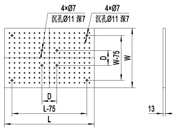 注:OTSB4560-13鋁合金面包板四角沉孔固定時(shí),中心施加120N的力;