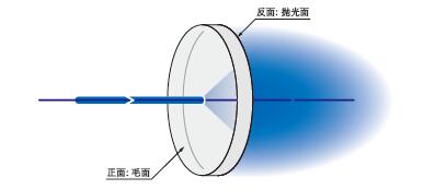 表面細(xì)膩的(例如,砂目數(shù):#1000,#1500)擴(kuò)散板的散射效果較弱,透過(guò)光束向周邊略微擴(kuò)散。