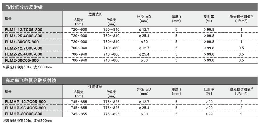 脈寬100fs以下的超短脈沖激光也能夠使用的波長分散很小的激光反射鏡。