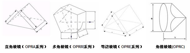 一般分為直角、多角、梯形、錐角和色散( 等邊) 棱鏡,主要用于分光或一些特殊用途。
