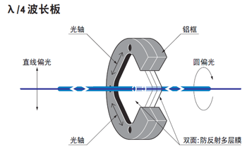 ● 波長(zhǎng)板有可以旋轉(zhuǎn)偏光方向的1/2波長(zhǎng)板和可以將直線偏光變換為圓偏光的1/4波長(zhǎng)板2種類型。