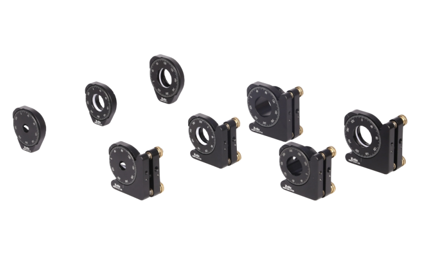 常見的偏振元件包括偏振片、波片、偏振棱鏡等,這些元件調(diào)整時(shí)基本上都需要繞光軸方向旋轉(zhuǎn),偏振片和波片通常為圓形片狀,帶封裝的偏振棱鏡通常為圓柱體。目前偏振元件廣泛應(yīng)用于液晶顯示、攝影技術(shù)、電影、生物學(xué)等各個(gè)領(lǐng)域,隨著市場(chǎng)不斷的發(fā)展,偏振光的應(yīng)用也越來(lái)越廣泛。偏振元件調(diào)整架是用于安裝、固定、調(diào)節(jié)偏振元件的一種裝置,通常具有旋轉(zhuǎn)、俯仰、偏擺等調(diào)整機(jī)構(gòu),有時(shí)也被稱為旋轉(zhuǎn)架。